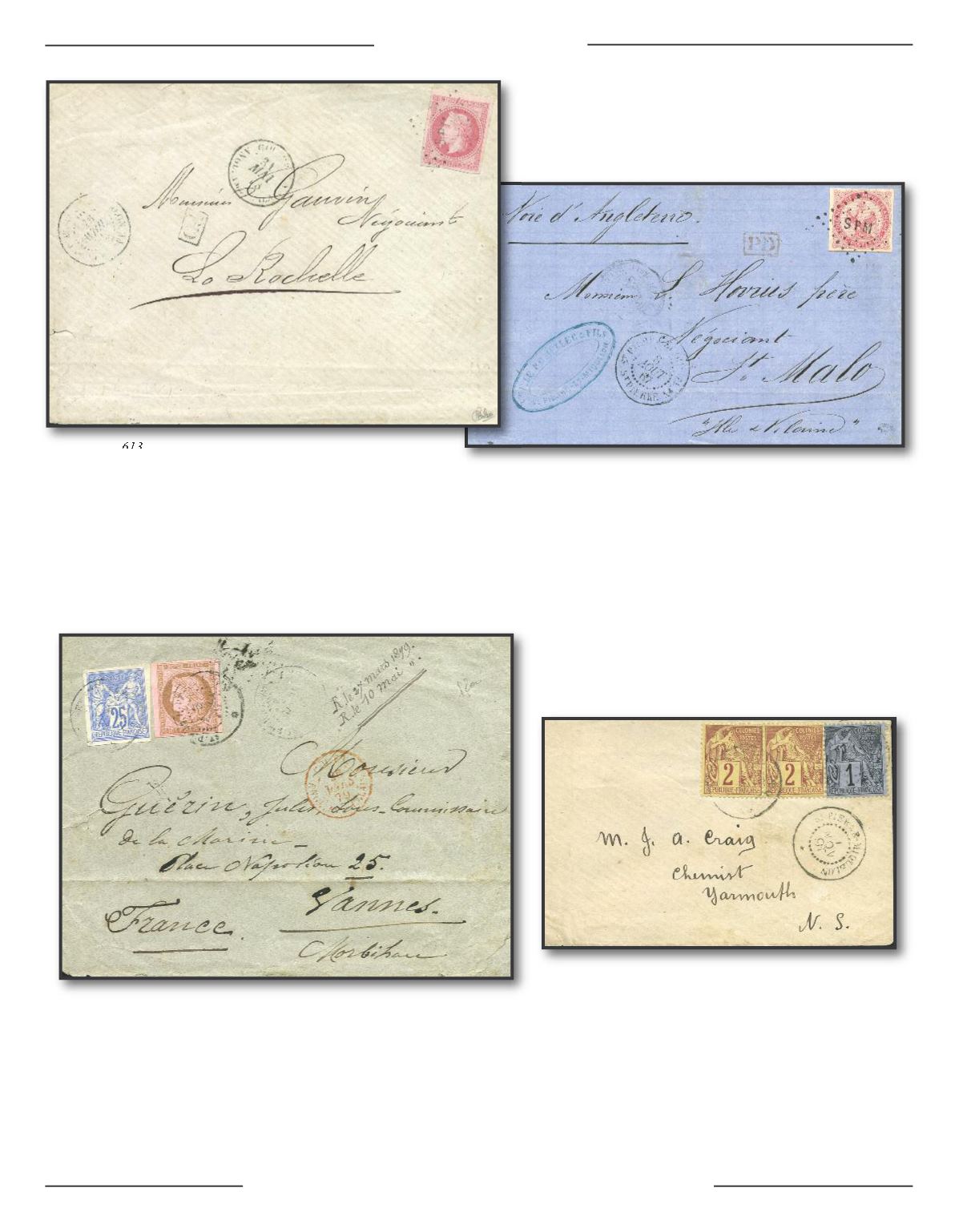 Colonies générale, 1872-77, 10c brun sur rose et 1877-79, 25c outremer oB C. ST PiErrE ET