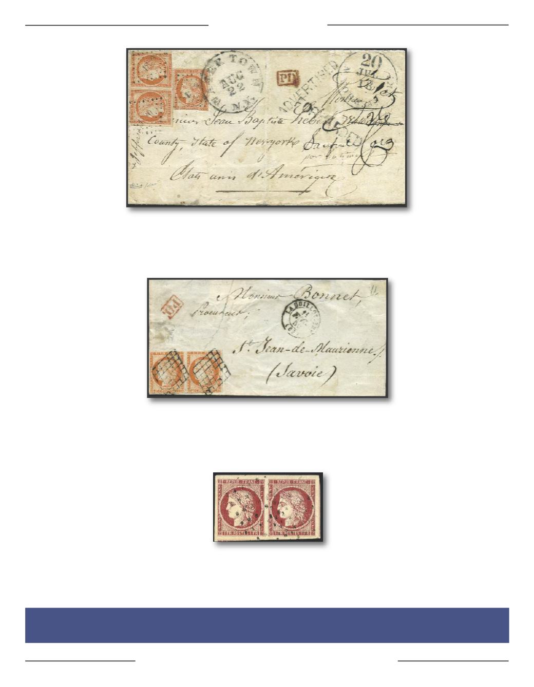 sur devant de lettre pour la Savoie. 11 février 1850. L'exemplaire de droite légèrement touché, grande rareté