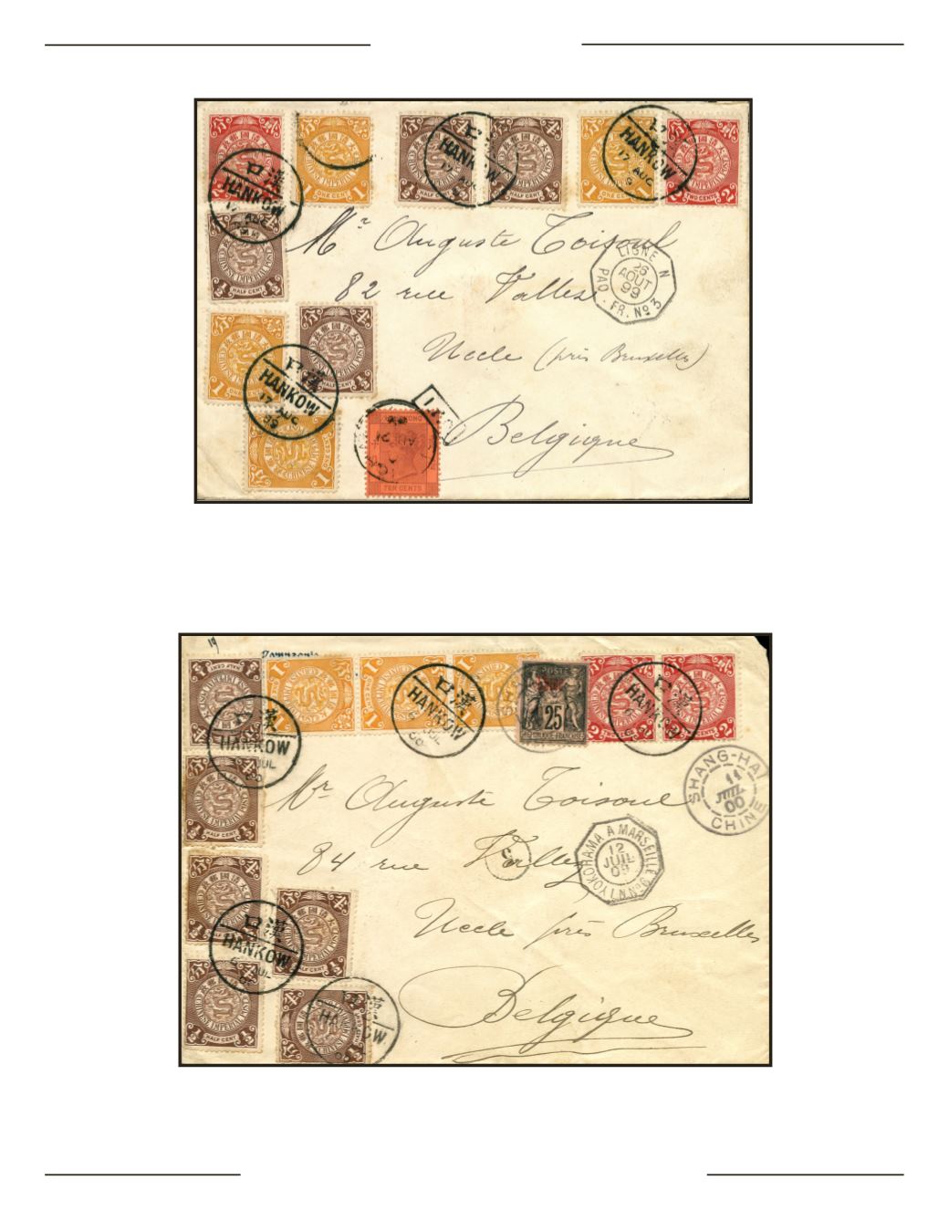 C. HAnkow et Hong-kong, 1882-1902, 10c violet sur rouge oB C. SHAnGHAi sur enveloppe pour