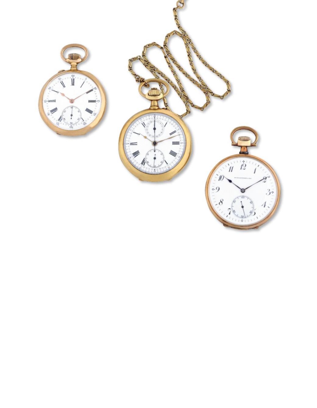 With a gold chain. Manual winding.